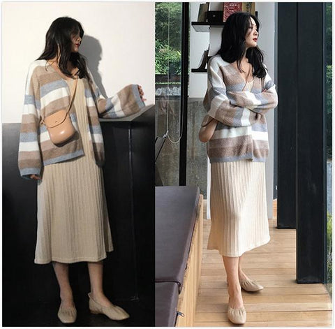 The gentle tones of the sweater coat give people a sense of western fashion, and any skin tone can be controlled. The design of the big V-neck is very simple and neat, coupled with the single-breasted design, adds a bright spot, simple and not monotonous. With a dress, and then put on a pair of exquisite small shoes, retro fashion with some elegant feeling.