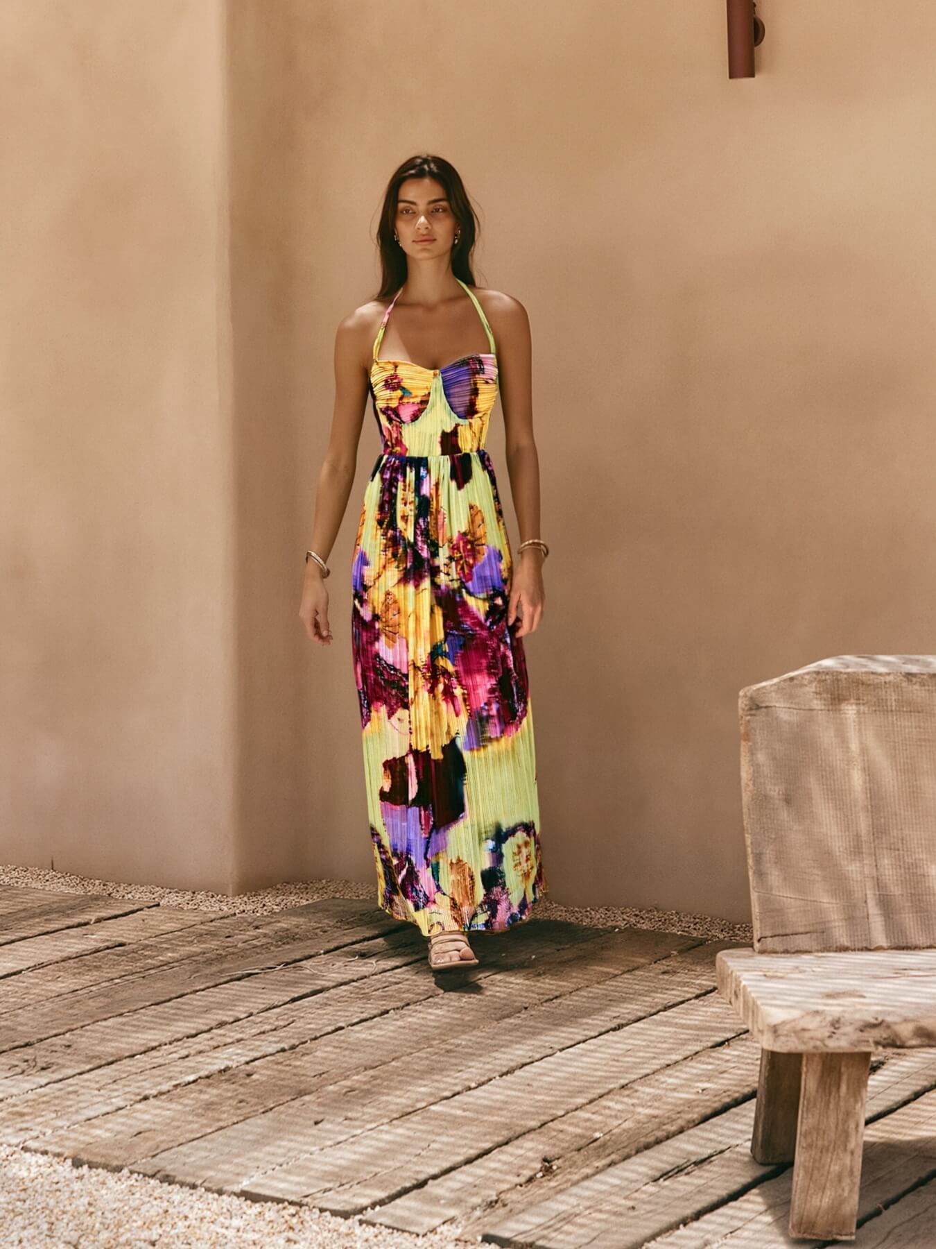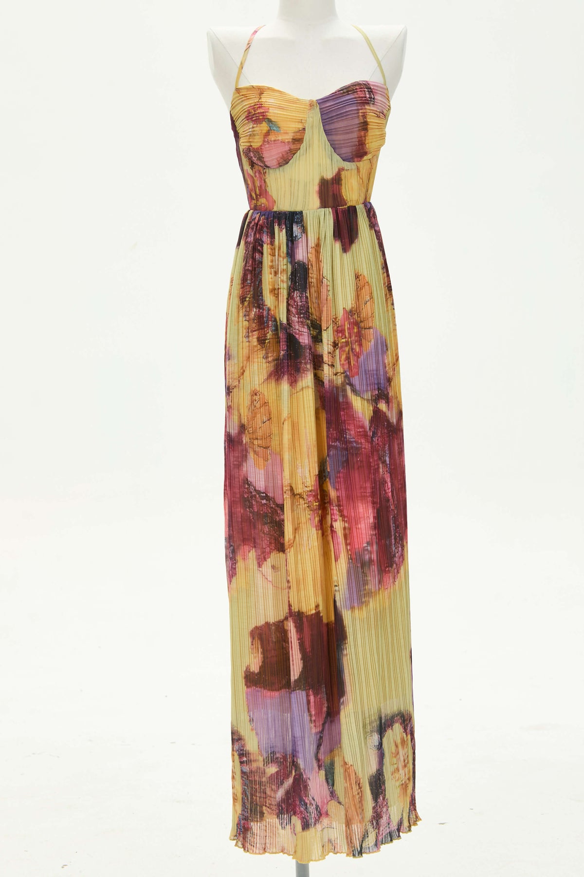 • Feature: Halter neckline. Adjustable shoulder straps. Floral prints. Maxi length.