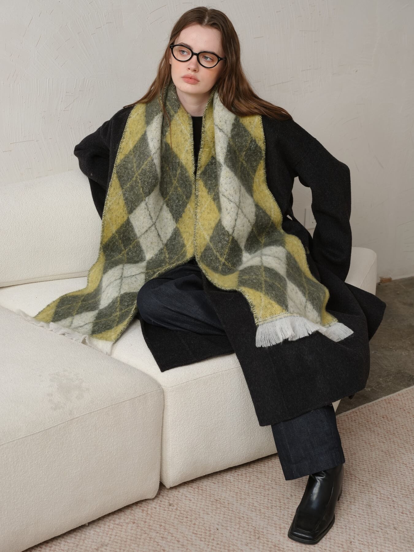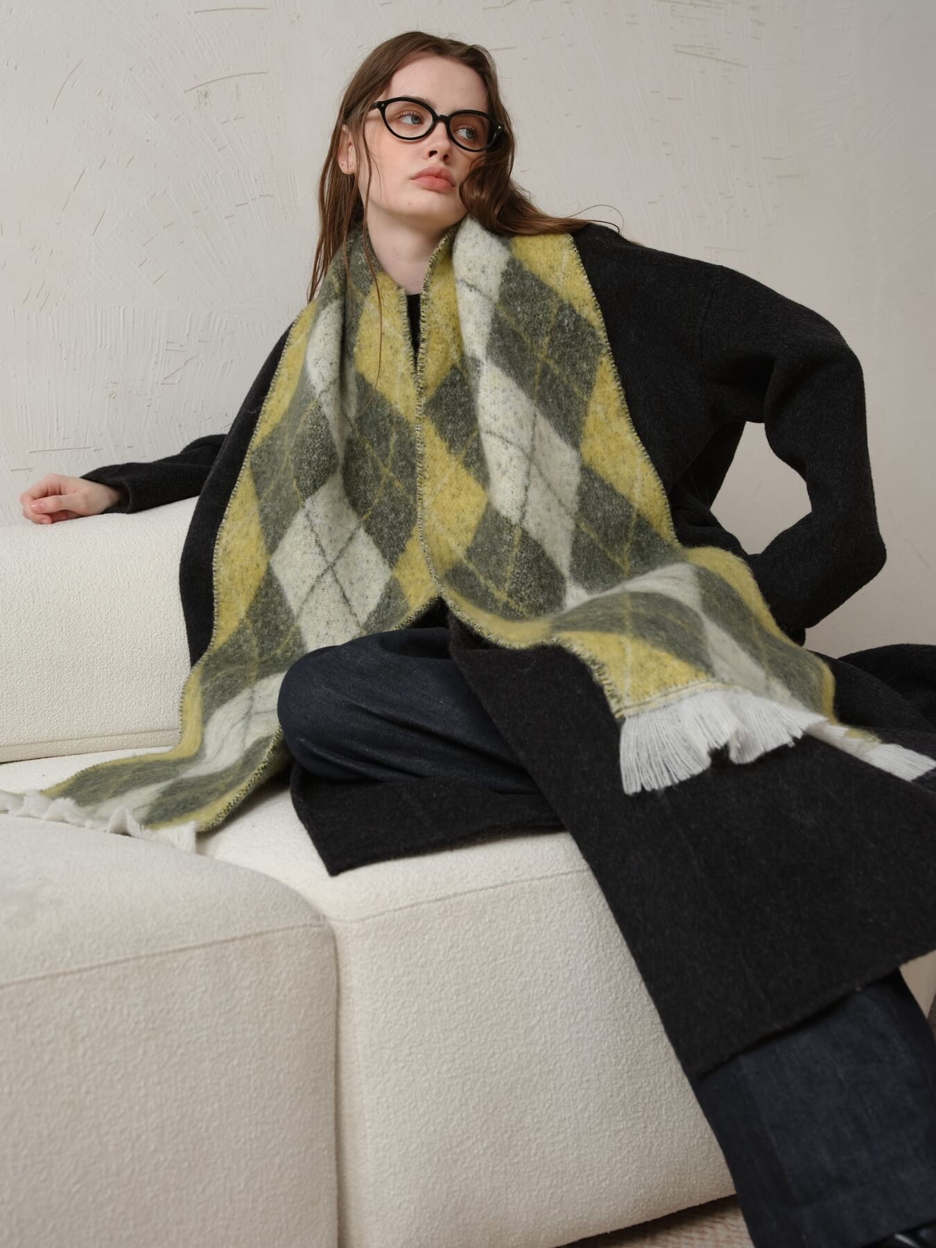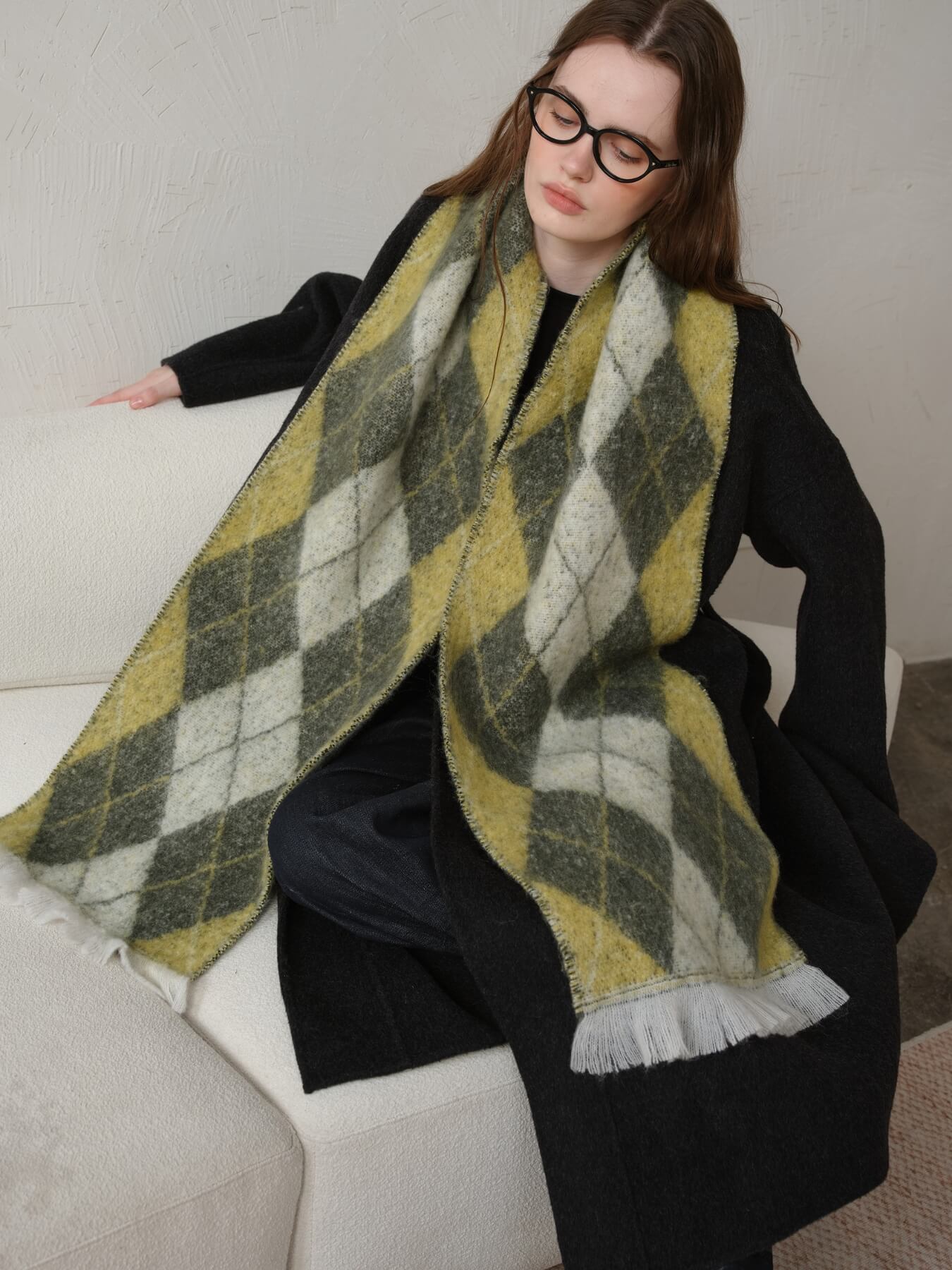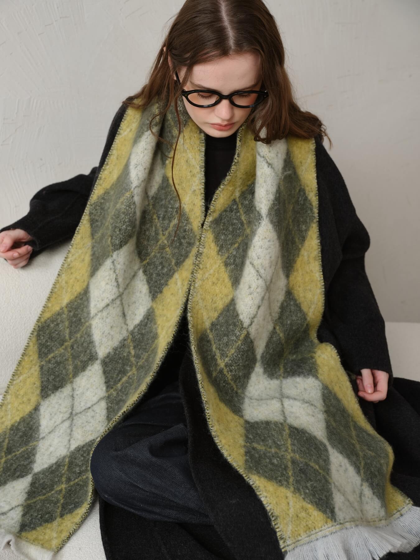The Chill Edit Diamond Contrast Scarf in green brings a fresh burst of personality to your accessory collection. With its eye-catching diamond pattern and clever color blocking, this scarf transforms any outfit from ordinary to memorable. Whether you're layering it casually or draping it with intention, the vibrant green hue adds that perfect pop of character without demanding all the attention. Light, versatile, and endlessly fun—this is the scarf that makes getting dressed feel like play.