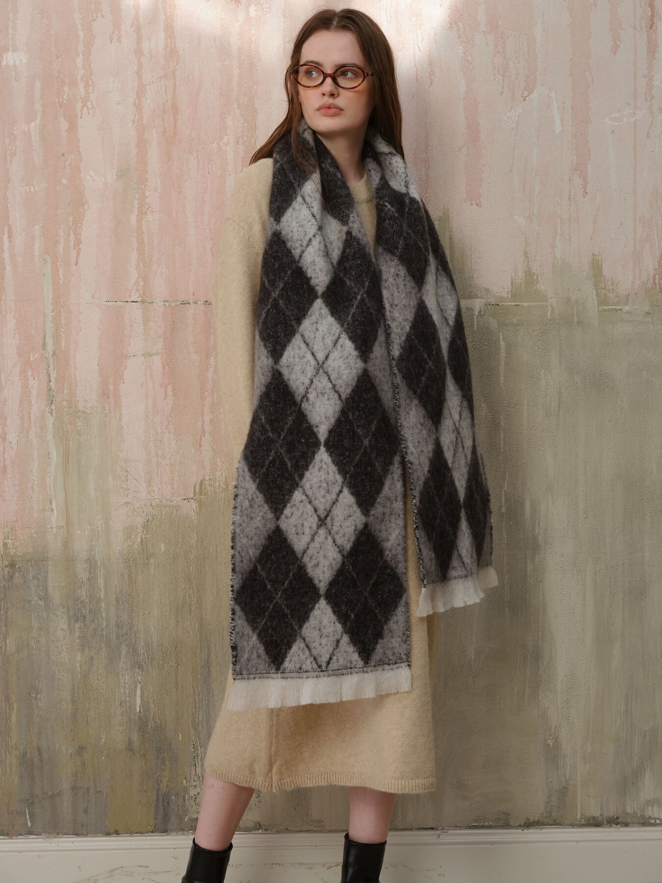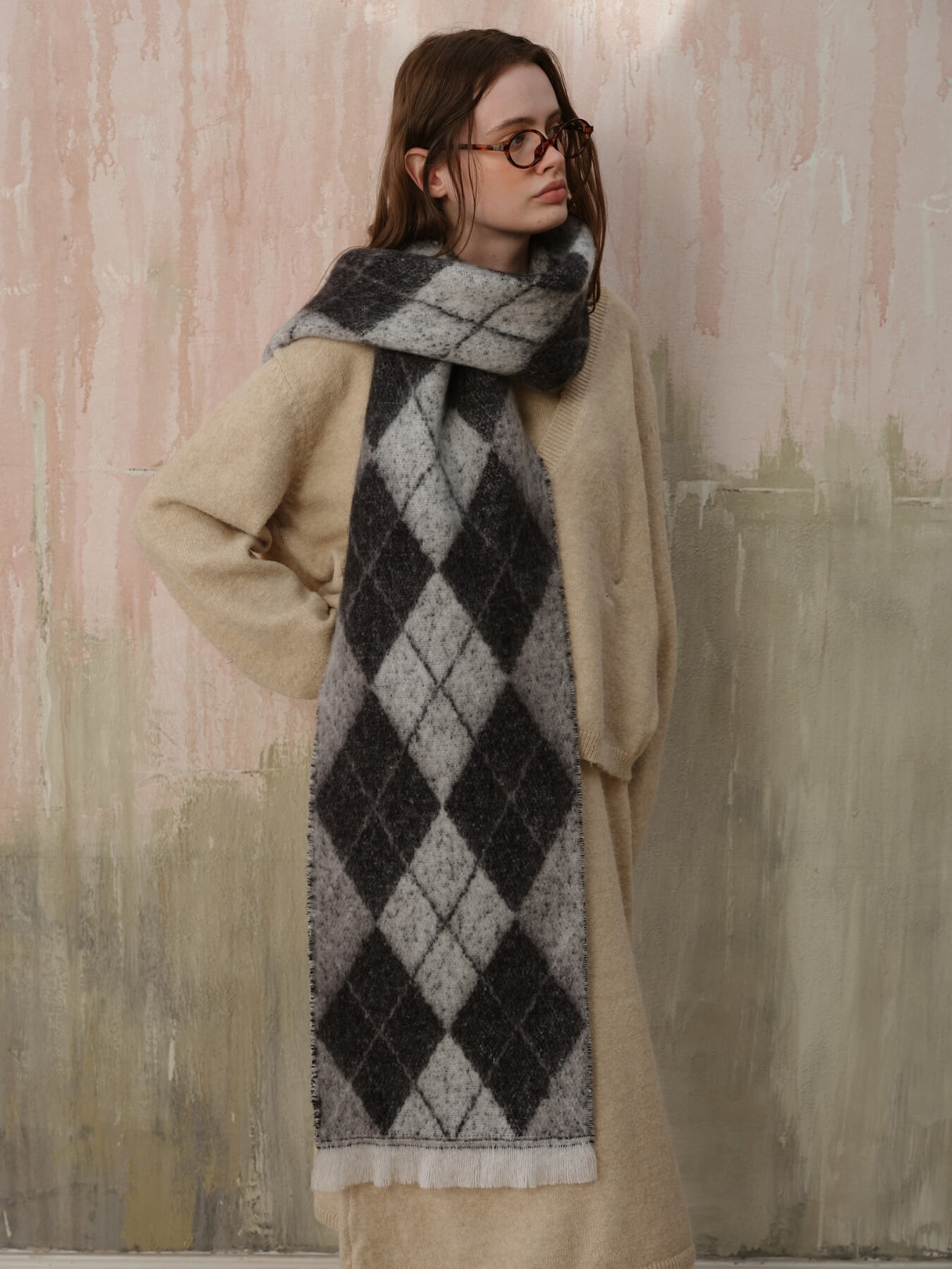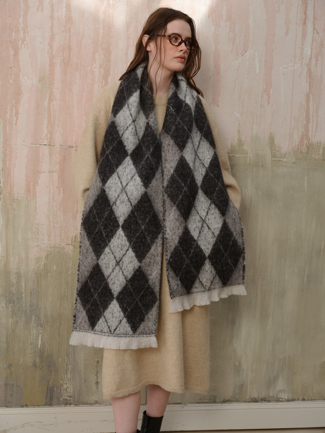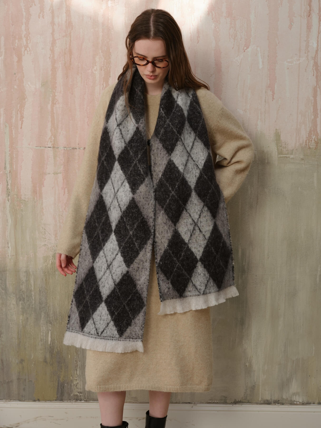 The Chill Edit Diamond Contrast Scarf in grey presents a refined take on geometric patterning. Its diamond motif with subtle tonal contrasts exudes understated luxury, making it an essential accessory for the discerning wardrobe. The neutral grey palette ensures effortless coordination with any ensemble, from minimalist basics to statement pieces. Designed with quality construction in mind, this scarf transcends seasonal trends, offering enduring elegance and versatility for those who appreciate timeless sophistication.