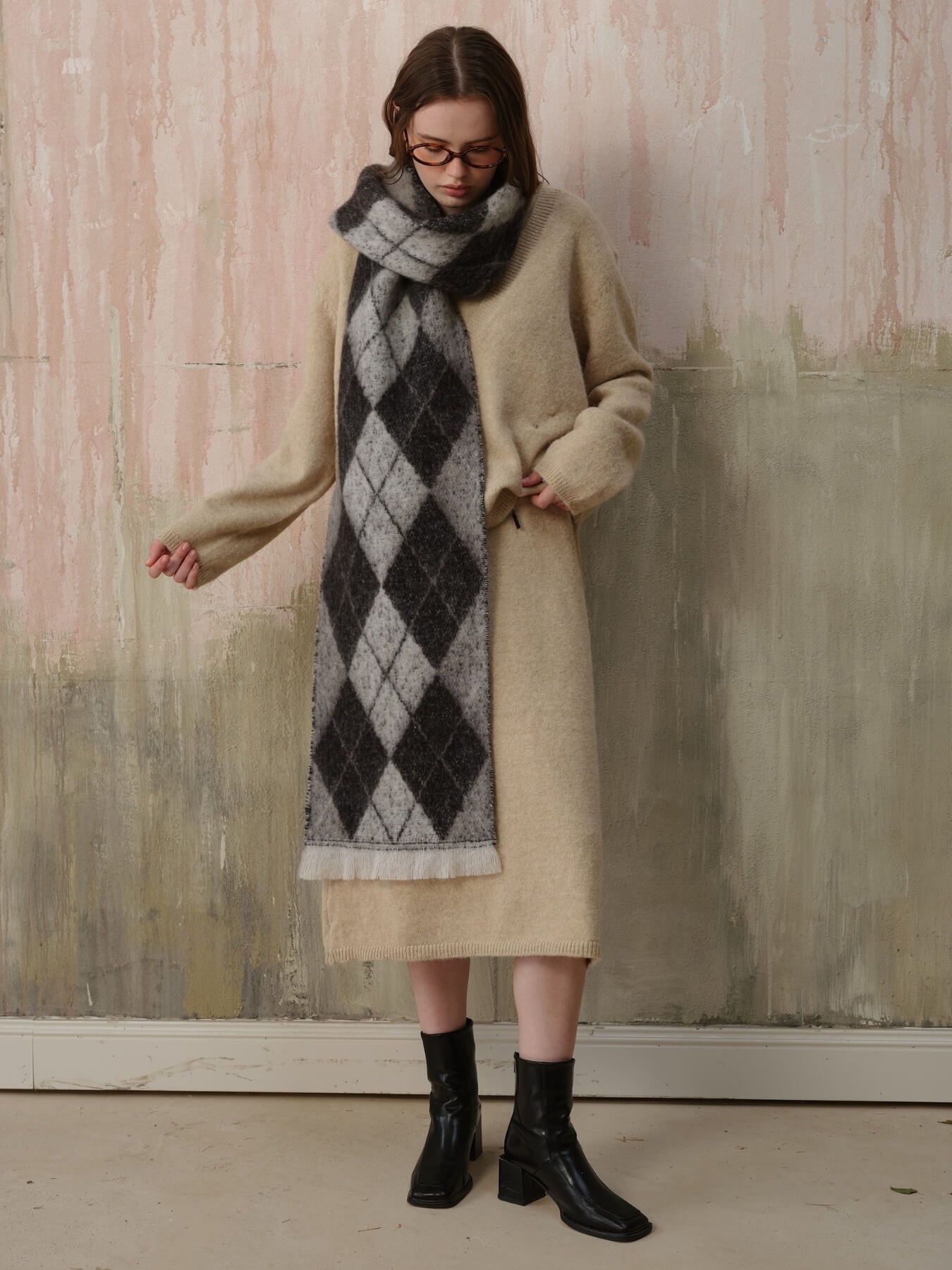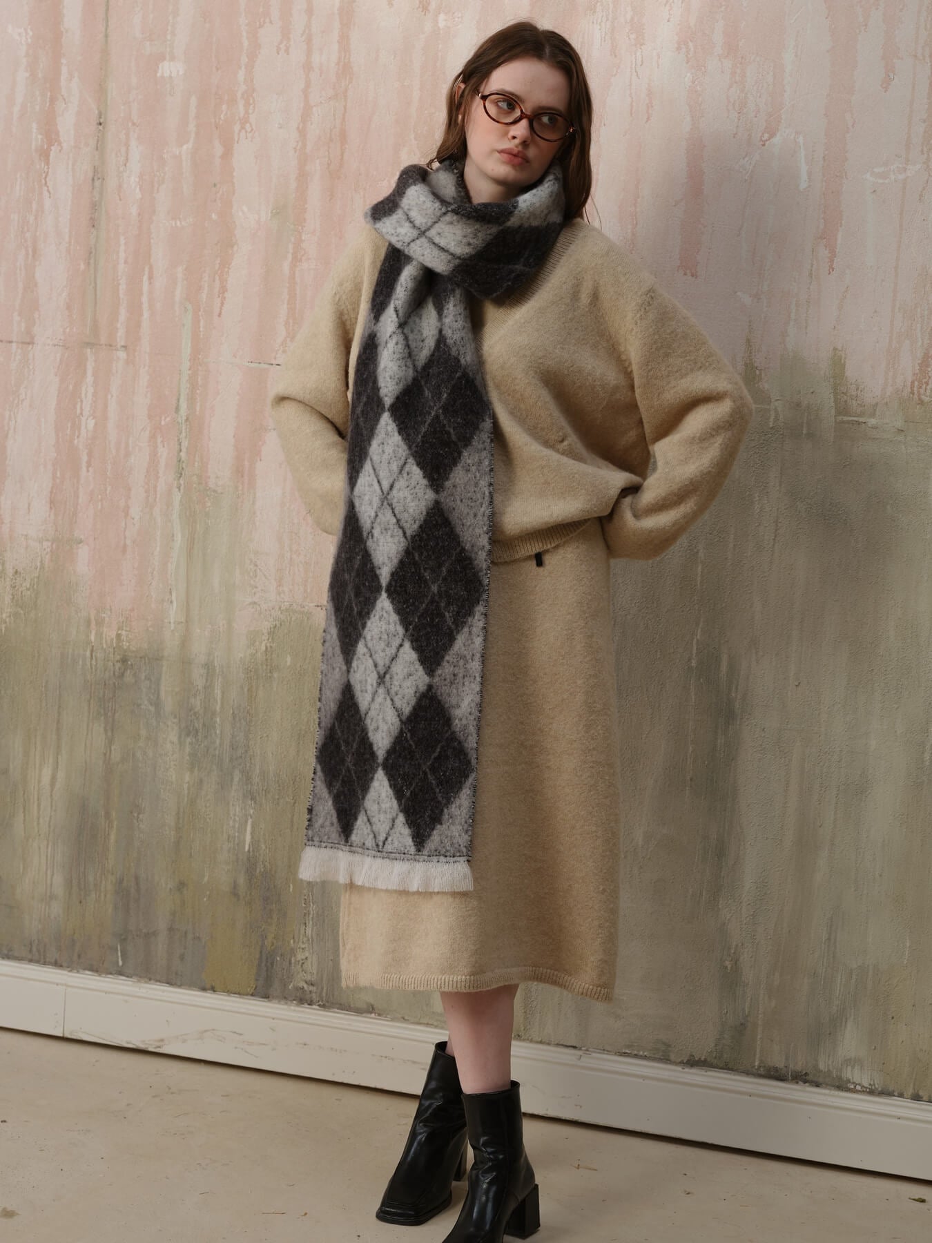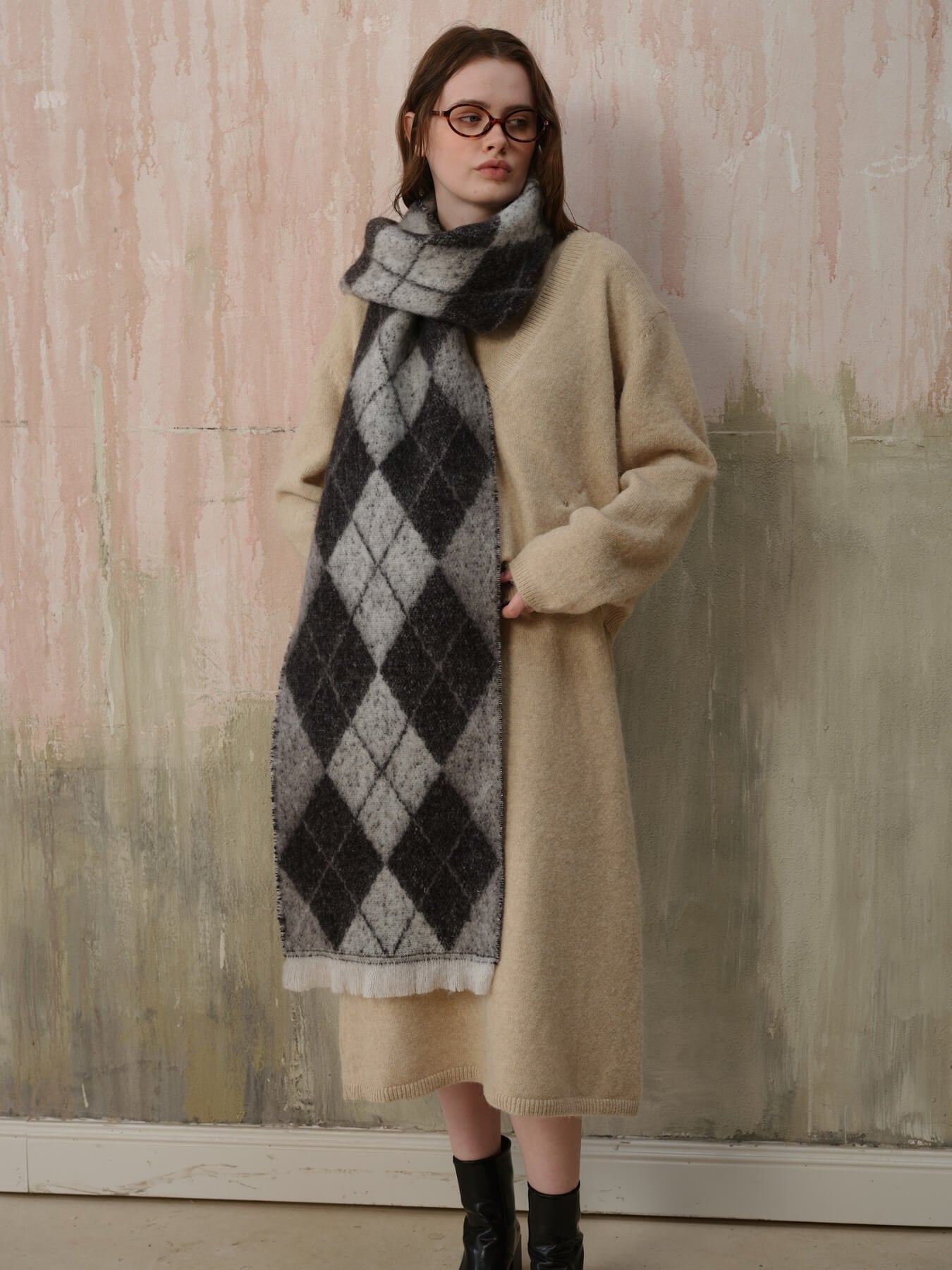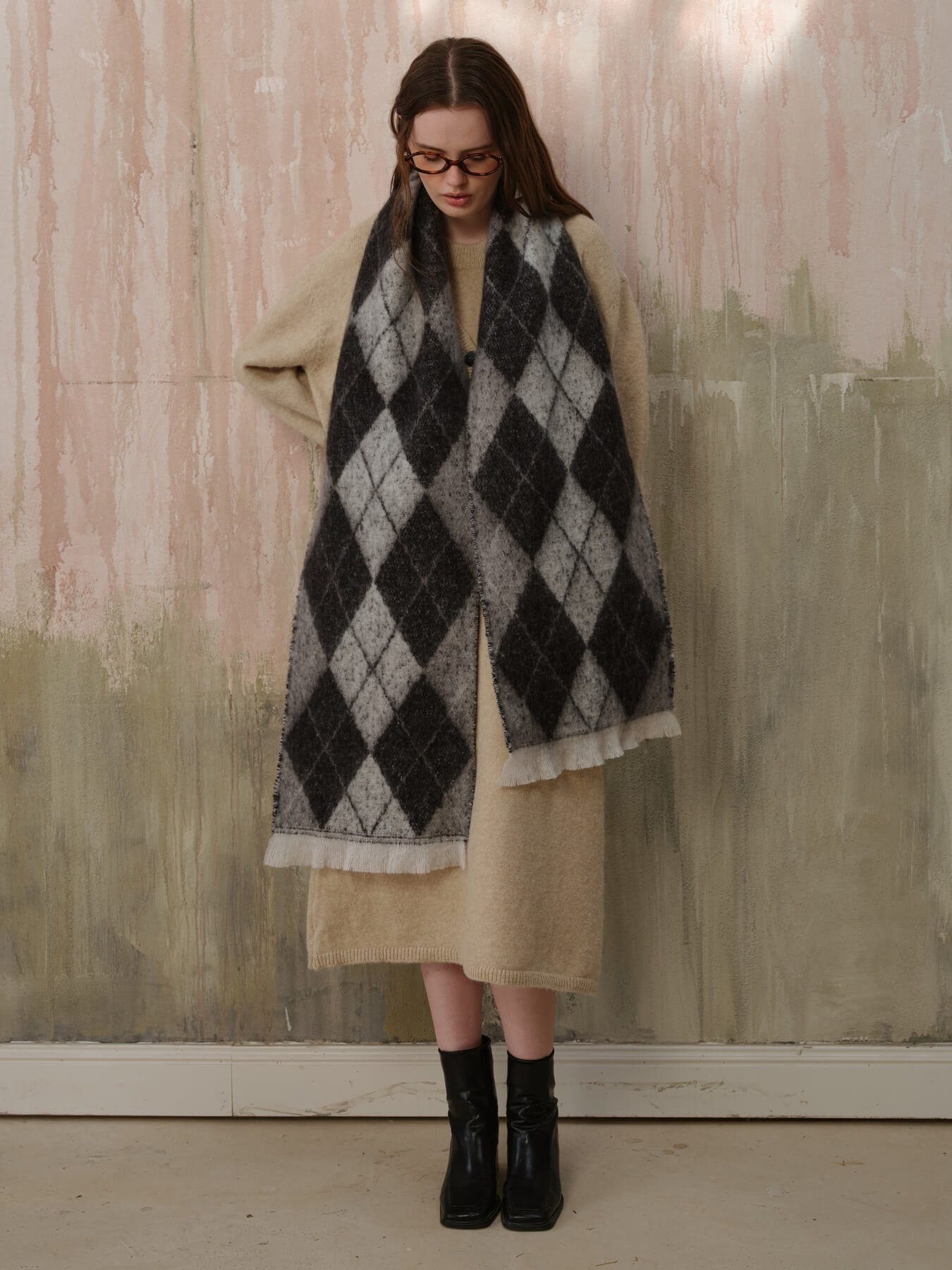 The Chill Edit Diamond Contrast Scarf in grey presents a refined take on geometric patterning. Its diamond motif with subtle tonal contrasts exudes understated luxury, making it an essential accessory for the discerning wardrobe. The neutral grey palette ensures effortless coordination with any ensemble, from minimalist basics to statement pieces. Designed with quality construction in mind, this scarf transcends seasonal trends, offering enduring elegance and versatility for those who appreciate timeless sophistication.